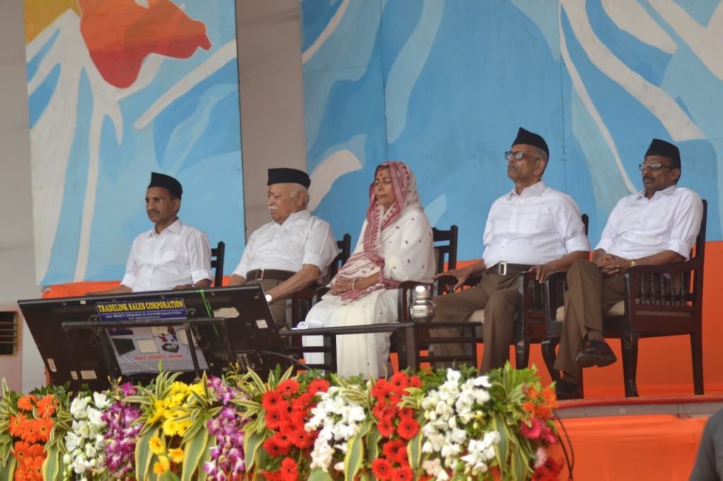 संघ प्रमुख मोहन भागवत ने प्रमुख मोहन भागवत ने विजयदशमी के मौके पर नागपुर के रेशमी बाल में आज संघ कार्यकर्ताओं को संबोधित किया।